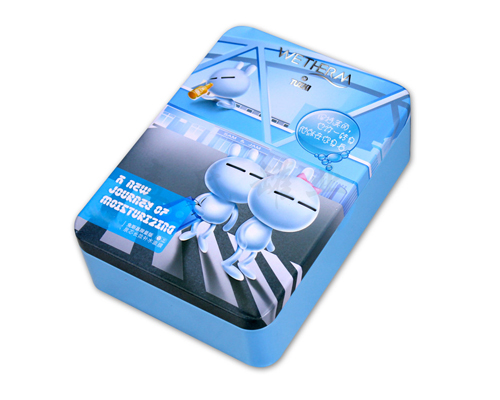 此款長方形面膜鐵盒子,其創意的長方形造型,精美別致的印刷版面,使得在化妝品市場上此款面膜鐵盒鐵盒為三片罐結構,蓋上可做雕刻工藝處理,而做雕刻能夠很好的增加鐵盒的整體觸感,讓人在直接接觸到產品的同時,可提高產品在消費者心中的印象.
