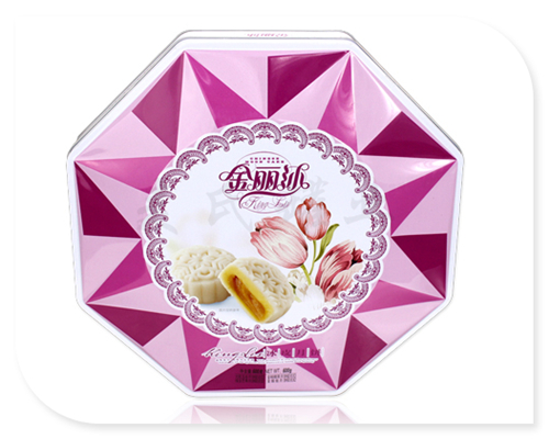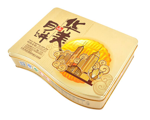 此款月餅鐵罐加工,外觀為創意的異形設計,外邊輪廓為波浪形態,在原有的方形月餅鐵罐方式上得到了新的突破。鐵罐為外卷線(鑼底)打頸線,密封性高,關于形狀設計,客戶如想定制自己想要的形狀效果,可開模制作,或在現有模具上加以調整改模制作,目的是為了讓客戶能隨時制作出個性化定制鐵罐的服務。