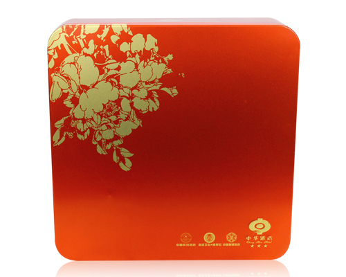 此款月餅鐵盒包裝為單面CMYK四色印刷處理,外過水性亮光油,內涂金油,過油目的不僅能提高鐵盒整體效果,具有強烈的金屬質感外,還對鐵盒印刷面形成一層致密的保護膜,對鐵盒刮花、防銹起到一定的防護作用。除了過光油、透明油外,客戶還可選擇過皺紋油、珠光油、爆炸油等。