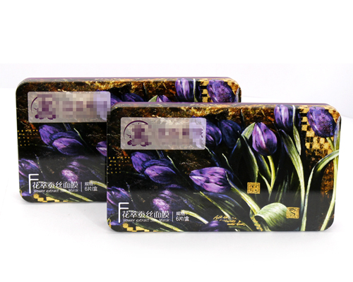 此款方形蠶絲面貼膜鐵盒包裝在印刷方面,鐵盒版面設(shè)計(jì)簡約大方,醒目,加深消費(fèi)者對面貼膜產(chǎn)品品牌的宣傳。