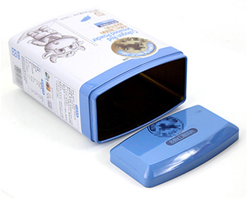 此款馬口鐵保健品鐵罐包裝為單面CMYK四色印刷處理,外過水性亮光油,內涂金油,過油目的不僅能提高鐵盒整體效果,具有強烈的金屬質感外,還對鐵罐印刷面形成一層致密的保護膜,對鐵罐刮花、防銹起到一定的防護作用。除了過光油、透明油外,客戶還可選擇過皺紋油、珠光油、爆炸油等。