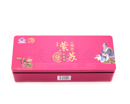此款九味參茸膠囊金屬包裝盒的制作基材是國產一級馬口鐵打造而成,選用單面四色印刷工藝,盒面過光油,盒內過金油,在美化外觀的同時,也起到了保護鐵盒的作用。我們還可在罐身上面做雕刻:做雕刻的作用在于可以讓鐵盒更立體化,從而引起消費者的注意力,客戶還可將相關產品的詳細參數印刷或雕刻于罐底或盒底,便于消費者了解盒內的產品,購買更放心!