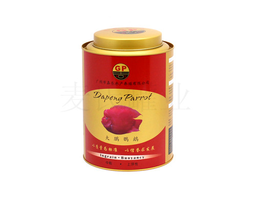 血鸚鵡魚食增紅魚飼料鐵罐印刷,為蓋縮口,扣底結構。采用國產0.25mm鍍錫馬口鐵精心打造而成,具有良好的防腐性,密封性,抗壓性等特點。